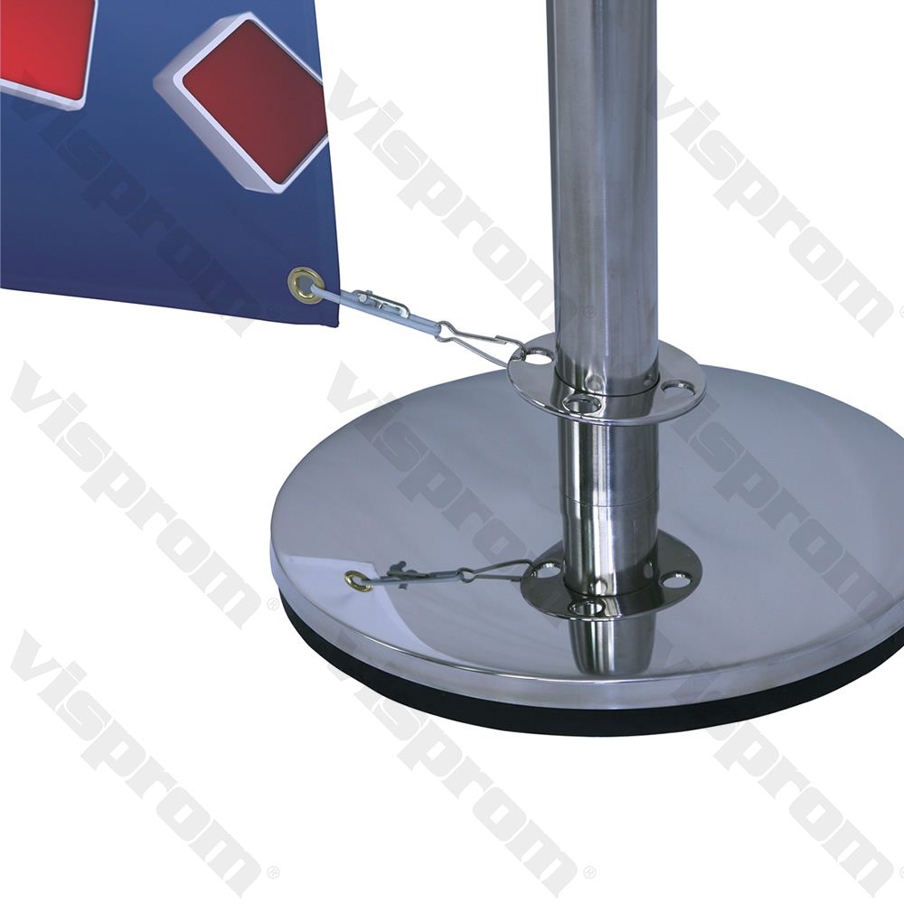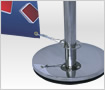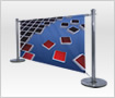 This promotional system includes two aluminum horizontal poles, polished steel posts, weighted bases and prints.