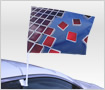 This action-packed advertising flag mounting in the rolled-up window or the roof of your car makes it a very effective attention-getter in your market area! |