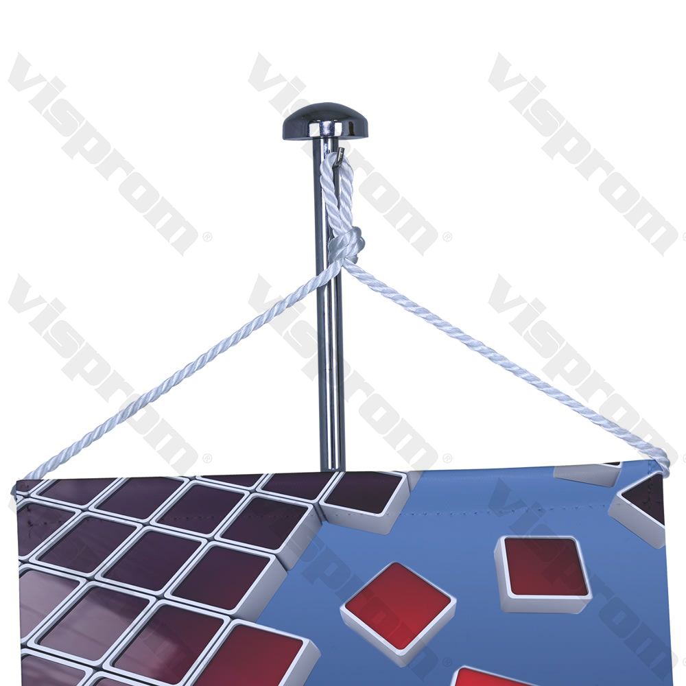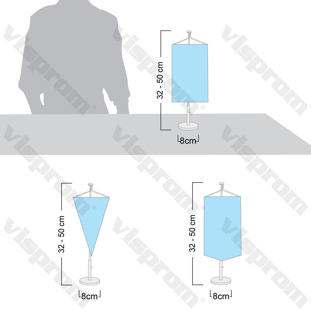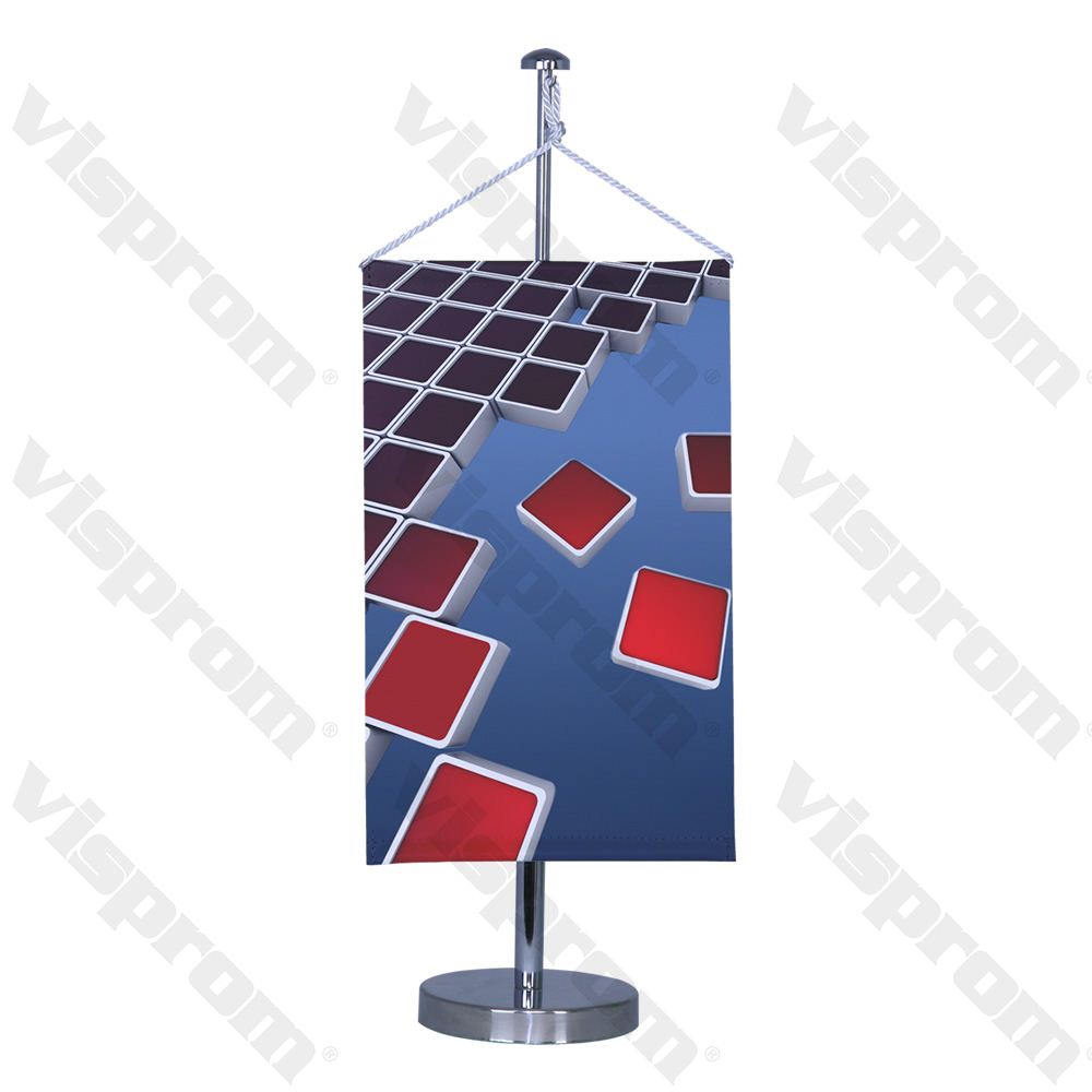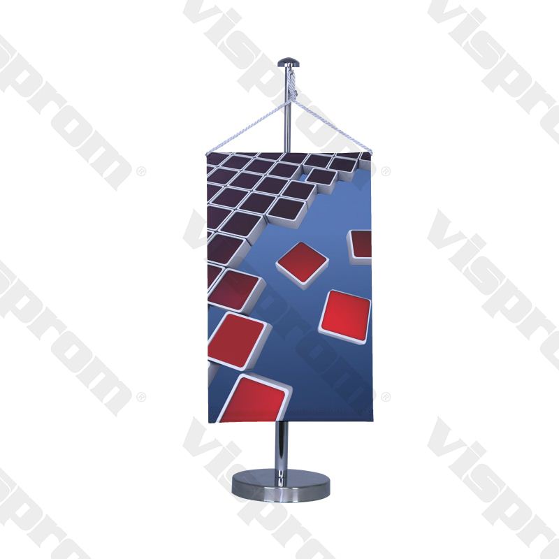 Including a light-weight telescopic pole with base and a scalable rope, our table banner set is convenient to use and perfect for counter top or table top advertising.