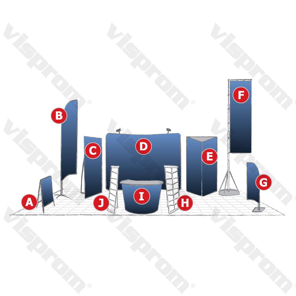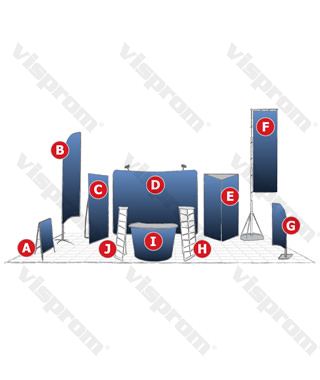 The Tradeshow Kit 400 offers an excellent way for your company to customize your 10x20 trade show booth with an array of options including freestanding Counter, A-Board, Windsails, Pop Up, Tube Shape, Empire Pole, Literature Racks and more. This innovative portable trade show solution makes it possible to move the components and change the presentation in your way that meets the changing theme or need of the visitors.