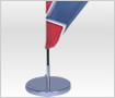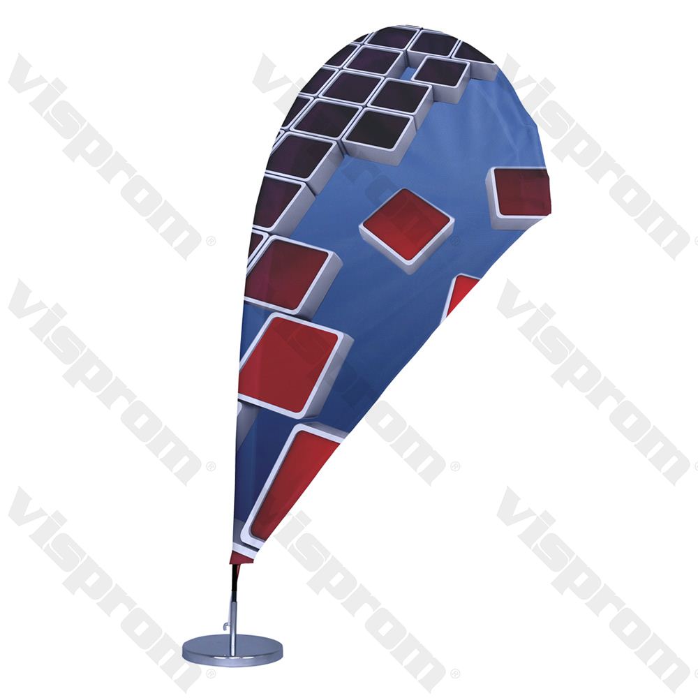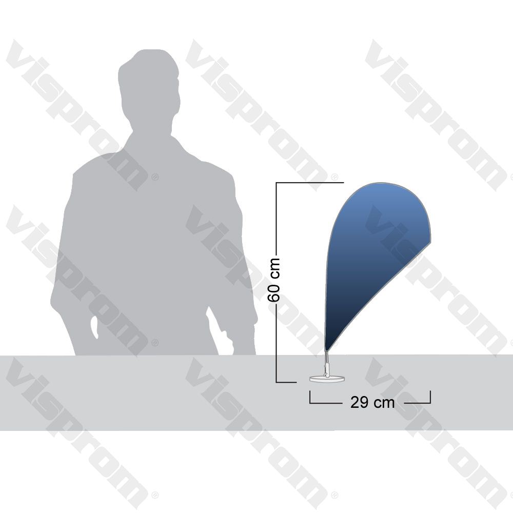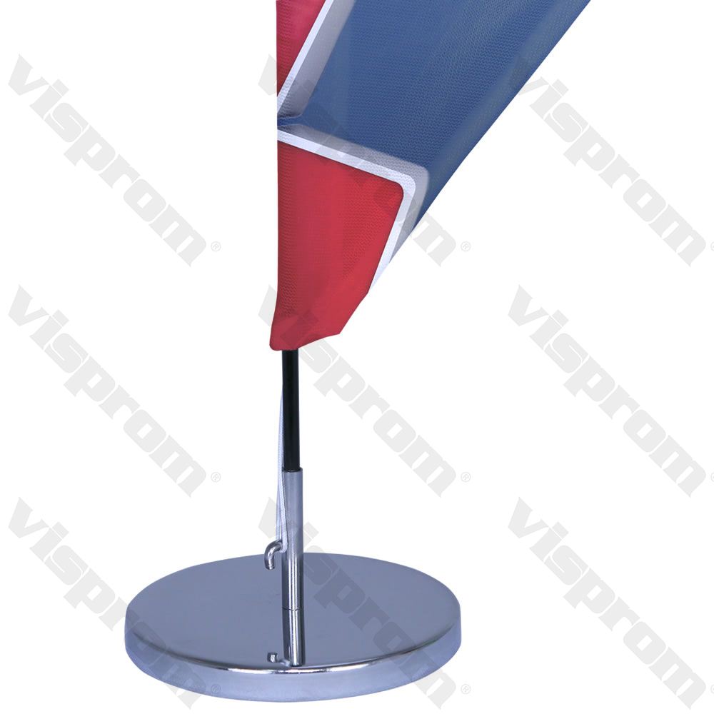 It is a table type in special size and shape of Visprom Windsails which includes a Fiberglass rod, an easy-to-use screw base and a colorful printed custom flag either single sided or double sided. Our shiny and durable stainless steel base rounds it up and creates a luxury class look.